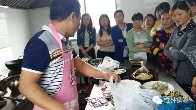 老师们分别从农村女性创业指导、互联网营销、农家乐食品安全、接待礼仪、农家菜烹饪技巧、优秀女性经营者经验分享等方面开展了为期2天的培训,培训内容丰富,通过理论加实践为农村女性提供系统全面的指导和交流,帮助有创业意向的妇女理清创业思路,创新经营方法,拓宽销售渠道。老师们的讲课,深入浅出,理论联系实际,以互动的方法极大地调动了学员们的兴趣,课堂气氛十分活跃。在最后一天的农家菜烹饪课上,老师更是利用桥林的特产茶干和玉米融合到菜品中,做出富有桥林特色的农家菜。