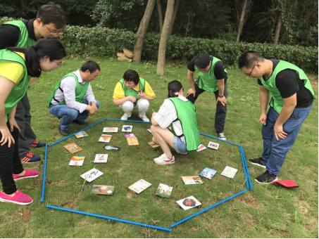 到达素拓场地后,队员们斗志昂扬整装待发。通过“桃花朵朵开”等热身环节,打破了队员间因性别、年龄产生的心理障碍,为之后的项目奠定了基础。接下来正式的比拼开始,队伍分成2支,分别为红队和绿队,各队投票产生了队长、队秘、队名、口号,并制作了队旗。通过完成“极速60秒”,“扫雷”等比赛项目,让两队队员都充分认识到团结协作的重要性,锻炼了从不同角度思考问题的能力。