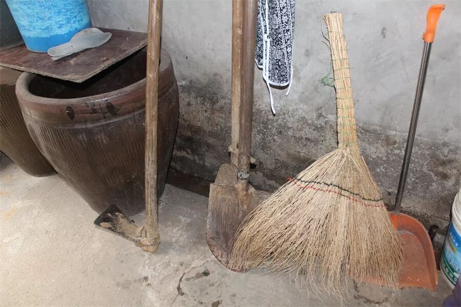 闲置的永久自行车、农具、水缸