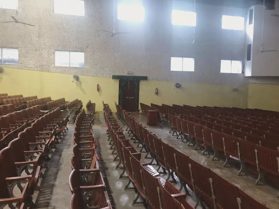 在公路边上还藏着一个“芳华”电影院,虽然如今改造成了教堂,但是进入里面,粉刷的墙壁、朴实的木座椅、老式挂掉的电风扇,一秒带你穿越到上个世纪,在1982年,它是全县第一家镇级电影院。