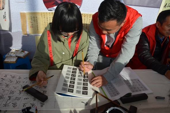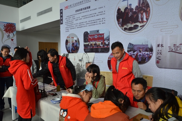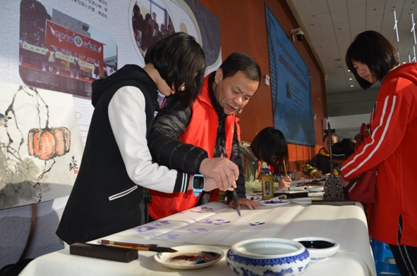 11月10日,“2018年浦口区终身学习活动周开幕式”在桥林街道举行,桥林社区教育中心的书画教育特色教育活动也同时开展。本次活动是一场现场教学观摩活动,万先亮是中国画教师,教育学生以形写神,形神兼备,要讲究气韵,追求意境,并手把手教学员画牡丹花;江庭福擅长硬笔书法,默默耕耘数十载,在硬笔书法方面已有相当的造诣,现场指导学员钢笔书写,不断提示书写时需注意的要点,让写了几十年钢笔字的人对硬笔的书写有了更深层次的认识;张征老师的软笔书法端庄秀美,作品气韵浓郁,不断有书法爱好者现场请教,张征老师也是毫无保留,边示范便指导。三位老师教学耐心细致,学员及书画爱好者学习热情高涨,书画台周围不断被围拢,呈现出浓浓的学习氛围。