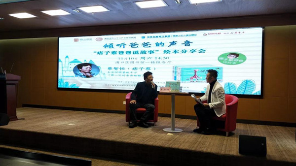 11月10日,由浦口区图书馆主办,浦口区社区培训学院、南京市求雨山文化创意产业园、南京市求雨山众创空间有限公司联办的品牌读书项目“雨山讲堂·名家有约”讲座在馆报告厅举行。本次活动邀请台湾著名网络小说作家蔡智恒(网名痞子蔡)携新作“痞子蔡爸爸说故事”系列绘本来到现场,活动吸引了130余名小朋友和家长慕名前来。