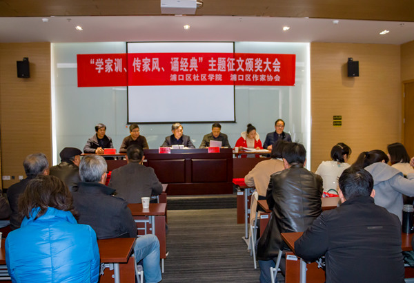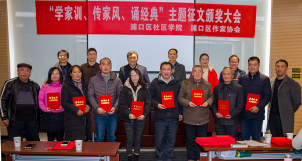 2018年12月24日下午,浦口区社区学院在区市民中心文化馆阶梯教室顺利举办“学家训、传家风、诵经典”征文颁奖活动。参加颁奖活动的有浦口区社区学院王永成副校长、孟舍柱主任、周仁理副主任、浦口区作协徐仁萍主席、吴永生副主席等。
