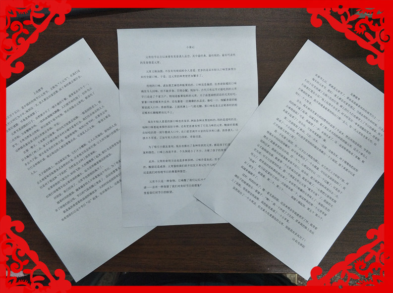 今年的元宵节正好是开学第二天,浦口区社区学院综高二部的同学们在紧张忙碌的学习之余,以征文比赛的形式怀想团圆、欢度佳节。有的同学在文中深情回忆了儿时过元宵节的童趣;有的同学感叹如今学业繁忙,年味淡了,但亲情不减;有的同学介绍了元宵节的来历和民俗;还有的同学以小说的形式抒发了自己对元宵节的感想。书写成文的过程,也是积极思考、加深感悟的过程。因此,此次“我的元宵节”征文评比活动,不仅提高了同学们的语文综合实践能力,更让大家领略到中华文化的博大精深和独特魅力。