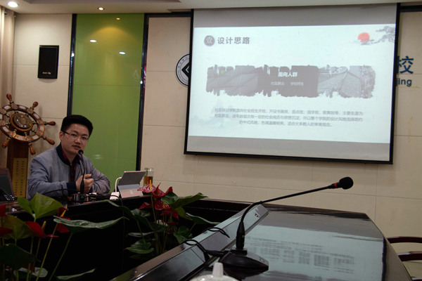 会议首先由江苏恒丰设计公司张宝扬经理介绍老年开放大学前期设计方案,张经理从音乐舞蹈、国学、面点等六大方面一一介绍老年开放大学功能教室设计思路,并通过PPT演示设计效果。
