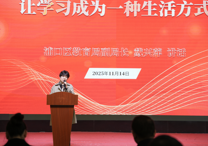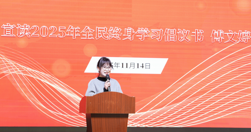 江苏省百姓学习之星傅文婷现场宣读了《2025年浦口区全民终身学习倡议书》,号召广大居民积极投身学习,共建崇尚学习的社会风尚。