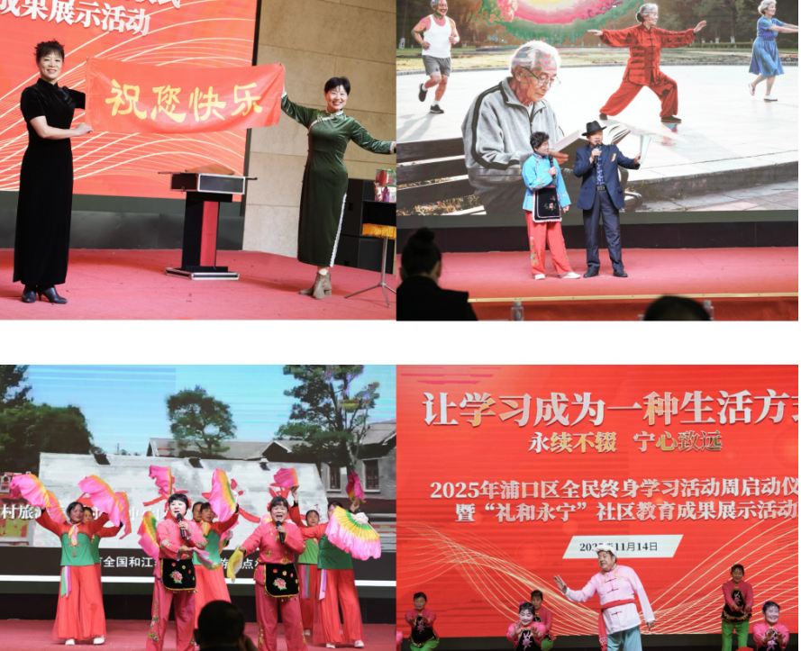 近日,浦口区全民终身学习活动周启动仪式暨“礼和永宁”社区教育成果展示活动在永宁街道举行。本次活动以“让学习成为一种生活方式”为主题,通过外场静态展示与内场成果展演相结合的形式,全面呈现全区终身教育工作成效,为推动建设“人人皆学、处处能学、时时可学”的学习型社会注入强劲动力。