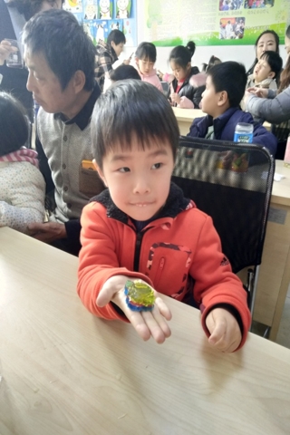 有趣的造型,好看的颜色都让小朋友雀跃不已,在戴老师的指导下,每个小朋友都完成了自己满意的作品。