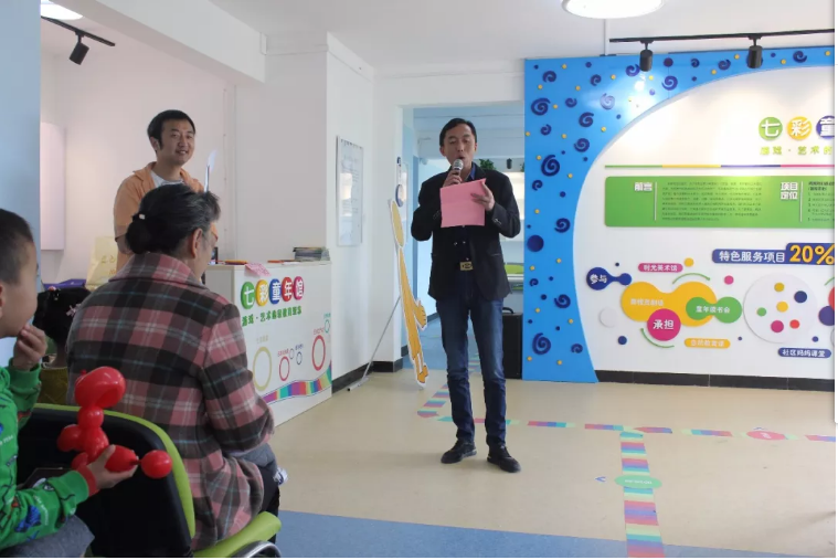 油坊社区主任张荣海为七彩童年馆作了开馆致词,他表示:少年智则国智,少年强则国强,少年进步则国进步!社区引进益万家社会组织打造童年主题场馆,致力于让活动激发孩子的无限可能,迎接美好未来。