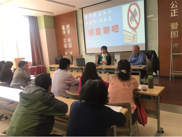 3月28日下午,由街道社区教育中心、嘉业社区及乐行天下艺术文化服务中心共同举办的“邻里聊吧”在社区多功能会议室如期举行。本次活动主题为“禁传销、反欺诈,共建和谐西善”,由社区民警张迎宾为居民耐心、细致讲解其重要意义。教育中心主任丁耿杰、社区主任李逸也参加了此次活动。