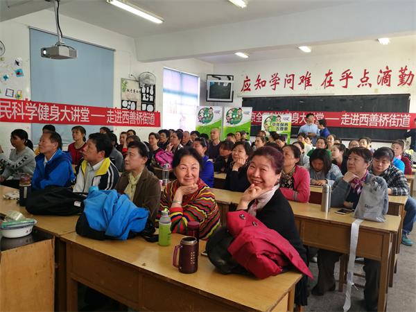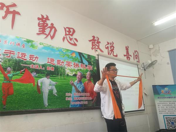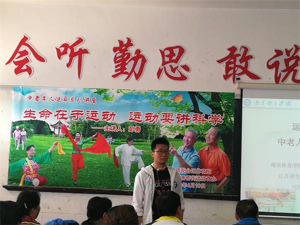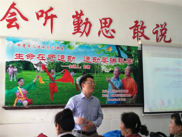 彭老师接着介绍了从2012年起,“运动是良医”健身新理念便在我国正式启动推广,大量医学研究结果也表明体育运动具有健身娱乐、防治疾病等多种积极的功效。有一句话这样形容:如果有一个人处方能够预防和治疗数十种疾病,如糖尿病、高血压、肥胖等,那么最好的处方就是运动。因此,为了推迟老化发生,中老年人应当提前采取措施,科学、适度地进行体育运动。