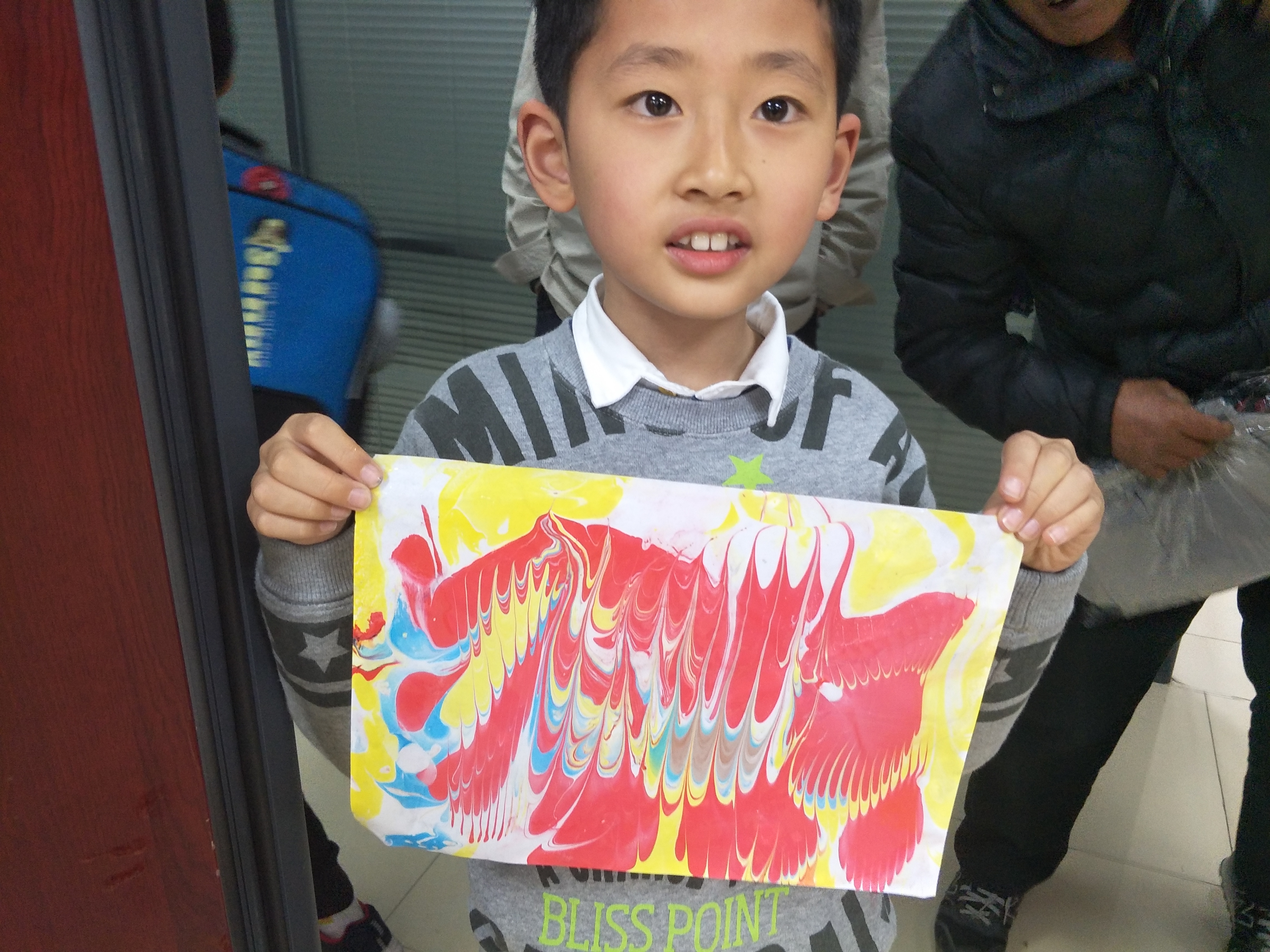 首先,社工向青少年儿童介绍了水拓画,原来就是在水面上画画,然后再拓印到纸上。但是水拓画的颜料和普通颜料不一样,它不溶于水,但是颜色却可以选择自己喜欢的颜料进行调色;使用的水虽然清澈却不是普通的水,而是按照比例添加植物粉进行调和出来的,颜料滴在水面,不会沉底,可以随着画棒的拨动而发生变化。孩子们再了解水拓画的基本原理后,开始积极地尝试,三个人一组,互帮互助,制作出一幅幅美丽的水拓画作品,也收获了难忘的友谊。