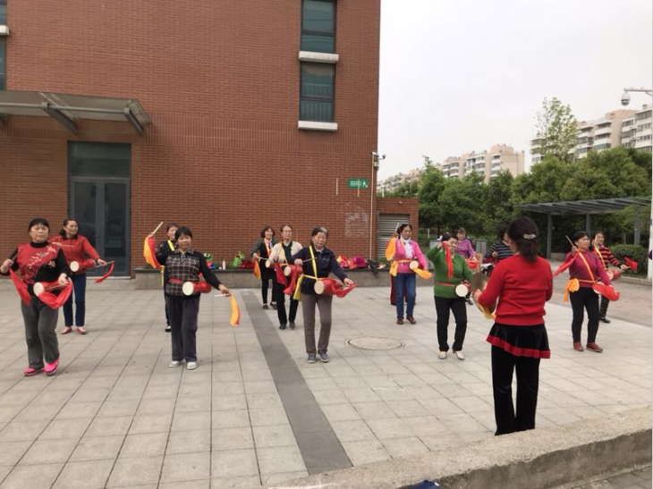 为了丰富西善花苑社区广大健身爱好者的健身方式,在街道社区教育中心的指导下,由社区居民自己牵头组织成立了一支20人的手拍鼓队,并且利用每周空闲时间固定积极参加培训班。