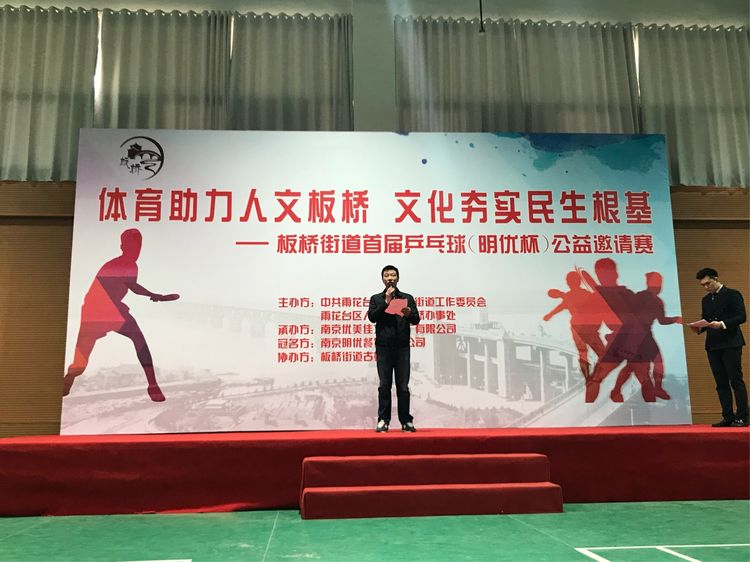 4月14日上午,板桥街道首届乒乓球公益邀请赛在古雄小学体育馆热烈开幕。