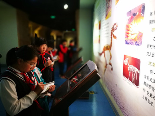 梅山街道梅欣社区为丰富社区学生对矿产资源、环境变迁、地质地貌的了解,组织社区20多名小学生于4月21日上午前往南京市地质博物馆参观学习。南京市地质博物馆坐落于玄武区,展馆设置了《中国石文化》、《矿产资源》、《恐龙世界》、《行星地球》和《生命演化》等展厅;展出岩石、矿物、古生物等标本约5000件。通过参观南京市地质博物馆,不仅给孩子们普及了科普知识,开阔了视野,还使他们进一步了解我们家乡的地质、地貌、矿产及深厚的文化底蕴,增长了知识,更让他们在互动实践中,体验了中国古代文化的历史魅力,让他们更深刻的理解“中国梦”的内涵,增强了他们的爱国之情。