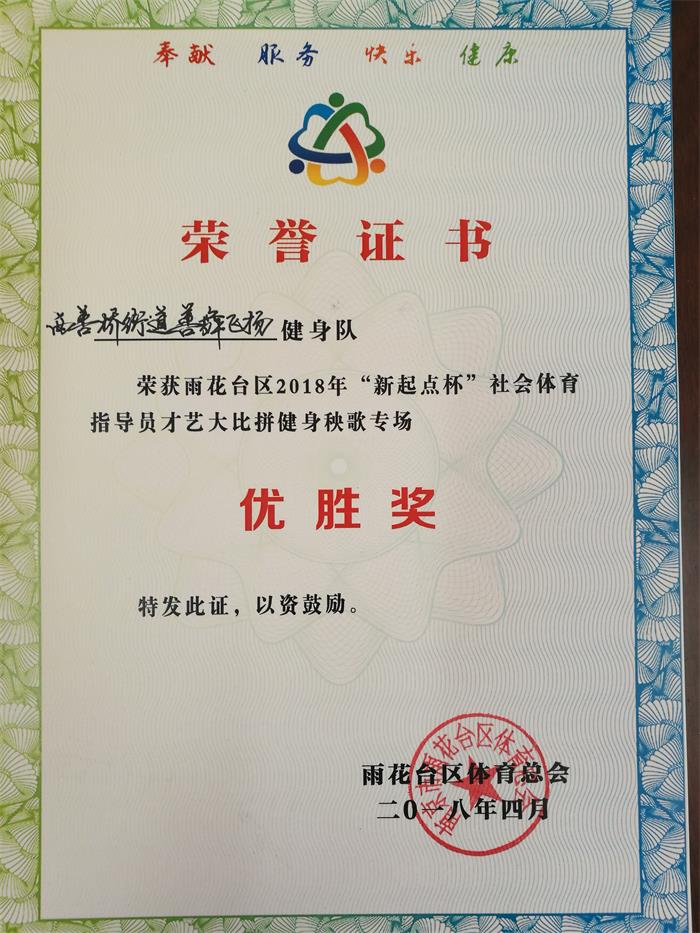 4月27日,由雨花台区体育总会举办的2018年“新起点杯”社会体育指导员才艺大比拼健身秧歌专场比赛在开发区金叶花园市民广场举行,我街道善舞飞扬舞蹈队参加了本次比赛。