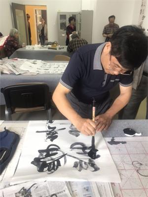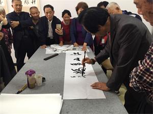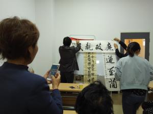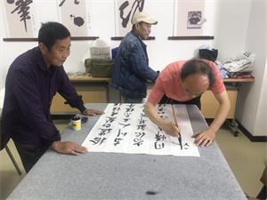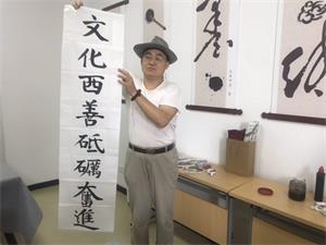现场展示朴拙幽默的书画作品,书画俱乐部成员写下——文化西善砥砺奋进