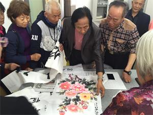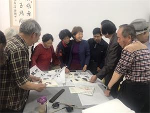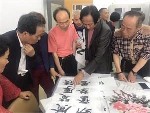 分享结束后,在嘉业社区书画室进行交流活动,书画爱好者纷纷请刘建汉老师点评作品,刘老师言语犀利却句句到位,大家都感到收获良多。