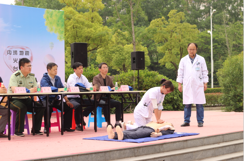 防空疏散演习,参与者身临其境,当防空袭警报响起,应急疏散演练指挥部下达疏散命令,引导员立即组织近百名群众快速、有序地按照既定撤离路线到达疏散地点;岱山卫生服务中心的专业医护人员还为大家就腿部骨折、伤者包扎、止血、固定,及心肺复苏等救护程序进行了现场演示,让群众了解医疗急救最基本的常识。岱山消防中队战士现场为居民授课逃生绳打结演练,并演练灭火器的使用,居民积极参与其中。