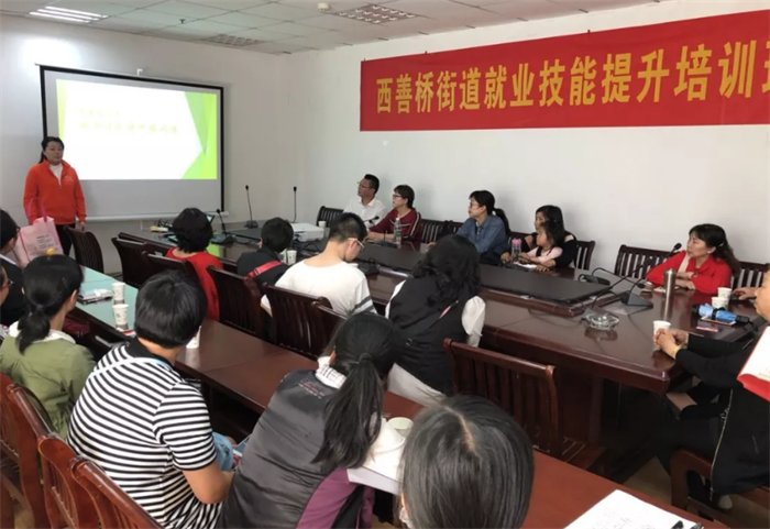 活动前期街道劳保所组织社区工作人员对辖区内失业人员求职意向进行摸底调查,其中有意向从事家政服务工作的居民比例较大。街道劳动和社会保障所联合南京友善社会工作服务中心和e家政公司于5月10日下午,在西善花苑社区举行西善桥街道就业技能提升培训班,培训的主题是家政服务。
