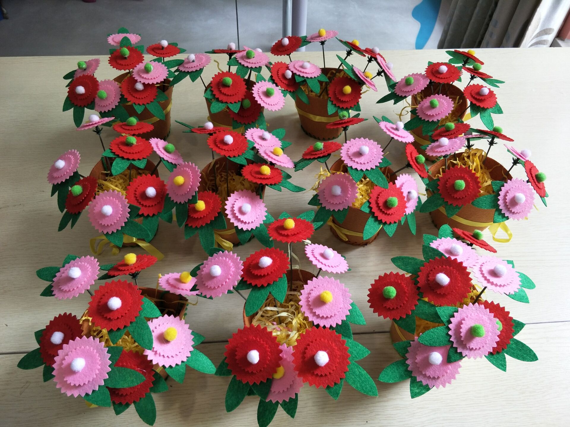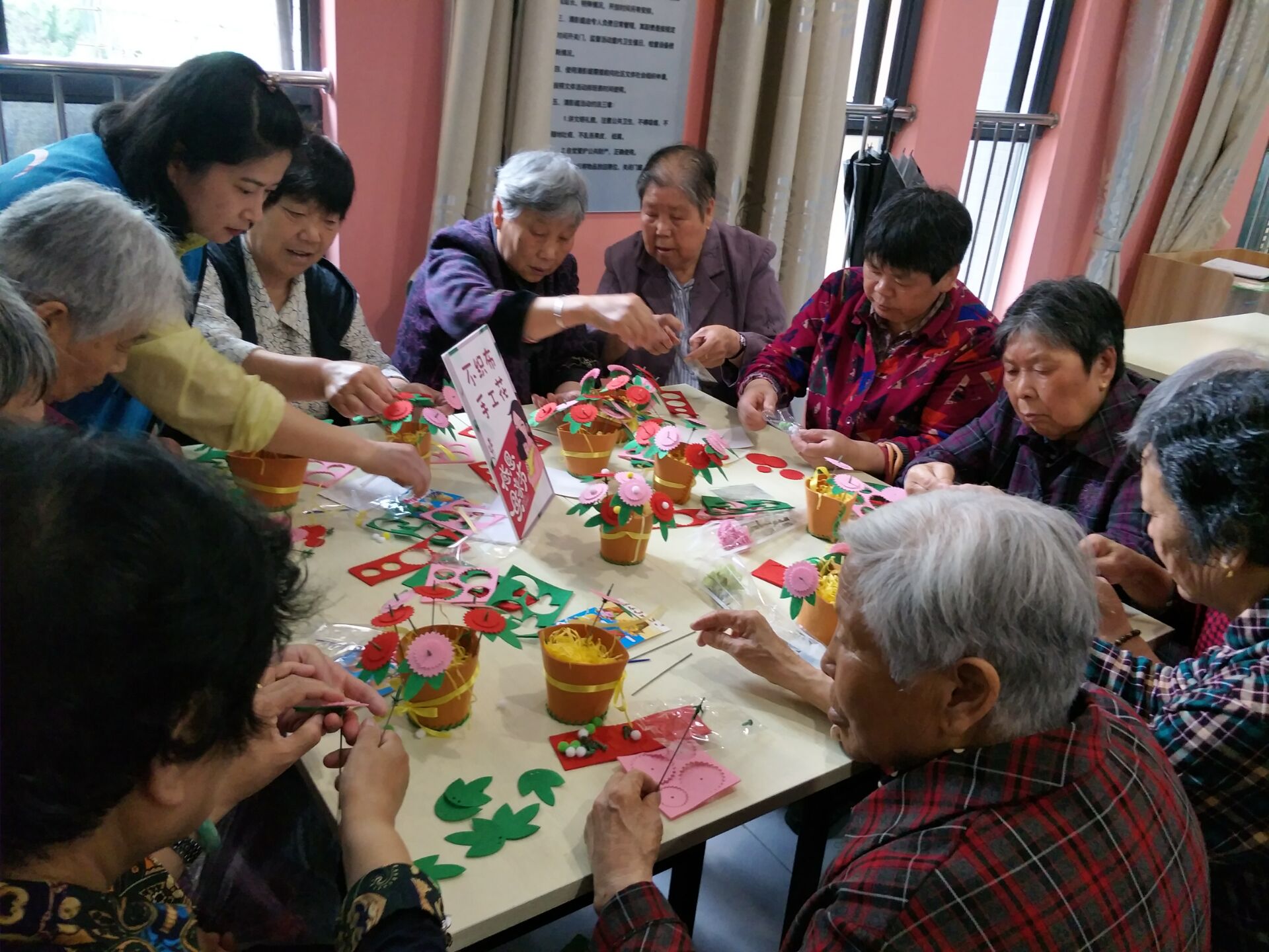 85岁的王奶奶手法灵活,一针一线仔细认真,花瓶很快就缝合好,把彩絮放入花瓶里,关键的一步就是制作康乃馨花了,先把花枝固定,套进叶子,花瓣,还有一个小球一样的花心呢。不一会儿,一朵朵粉色的,红色的康乃馨在奶奶们的巧手中诞生了,奶奶们手捧自己亲手制作的康乃馨,每个人脸上都露出会心的微笑,社区还为前来参加活动的每位妈妈们准备了精美的礼品。