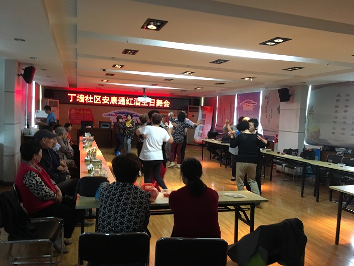 5月25日,丁墙社区联合安康通居家养老服务中心为社区内老人举办红酒生日舞会,布置准备生日会时,虽然天空不作美,下着大雨,但是这并没有阻挡我们为老人过生日的热情。活动临近开始,老人们为了不错过活动开场甚至冒雨准时前来。大家听着音乐,品着红酒,同时也在寻找着自己的舞伴,纷纷用舞蹈为各位寿星们庆祝生日,不会跳舞的端起杯中酒向寿星表示祝福,虽然手中举着的不是高脚杯,但是老人们的优雅丝毫不减,现场气氛十分热烈。这一瞬间老人仿佛回到了年轻,在昏暗的舞蹈灯光下,灵动得旋转,已看不出两鬓斑白,银丝白发。活动结束后,老人们聚在一起聊天,都表示来到安康通就像回到家一样,很温暖,很有爱,也期待着下一次的活动到来。这就是我们的居家养老,认真努力做到我们不一样。