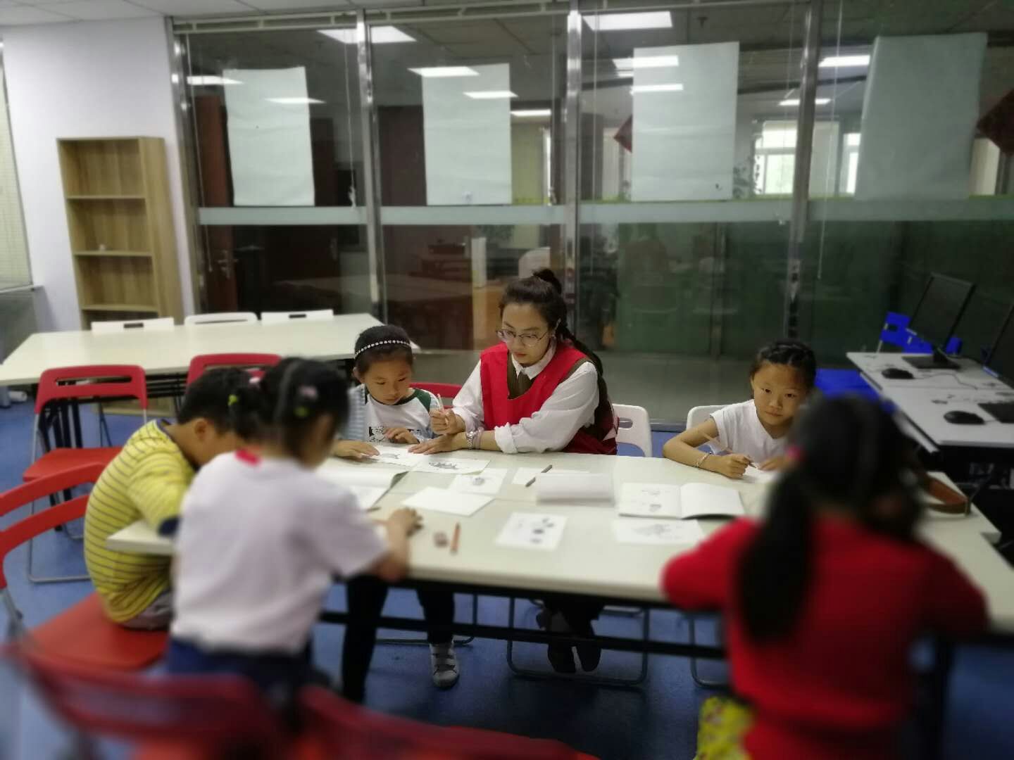 5月19日上午,来自雨花台区实验小学善水湾分校的杨雅杰老师来到板桥街道殷富社区,为社区内的孩子们带来了一堂有趣的儿童插画手绘课。